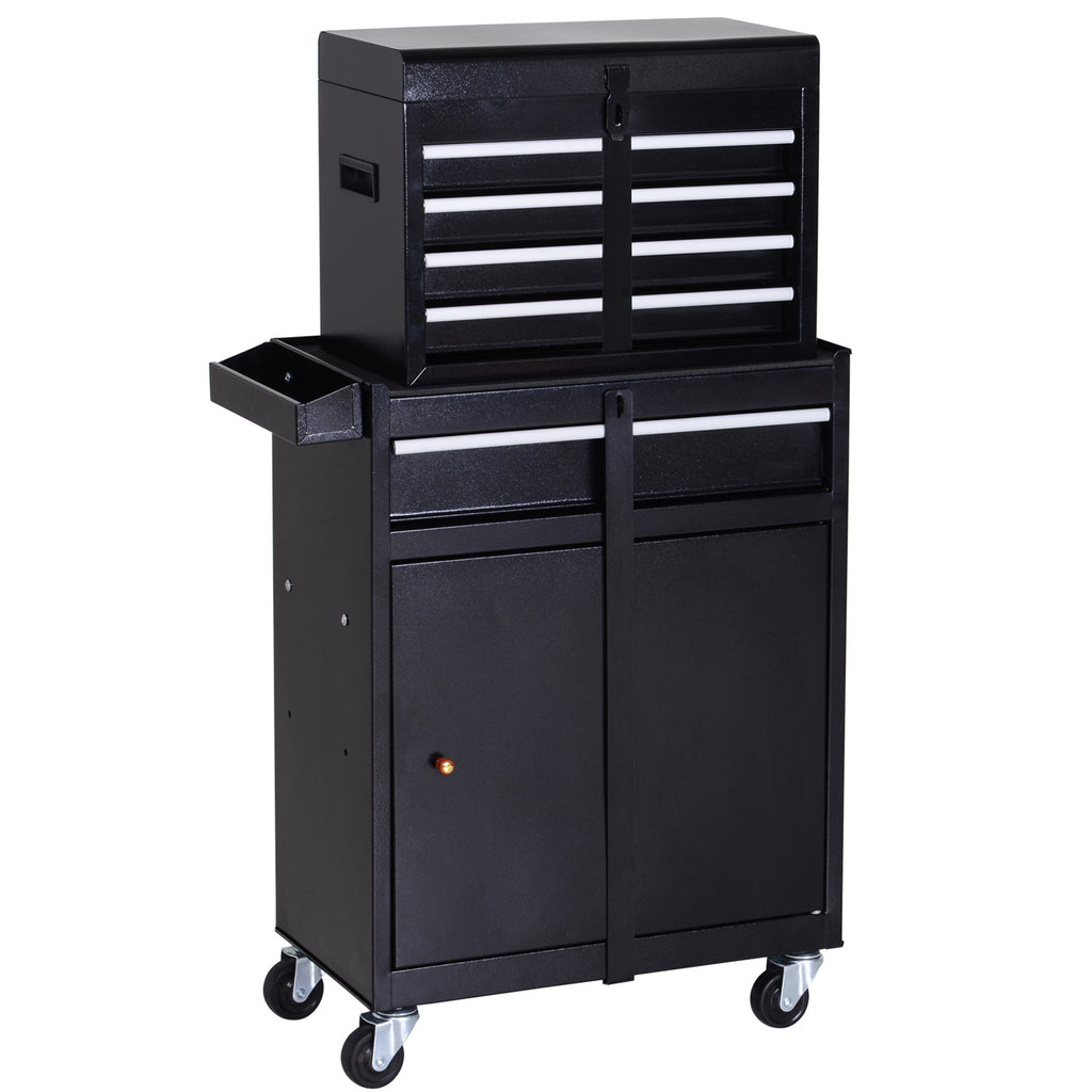 Da passt was rein: Der geräumige Werkzeugschrank von DURHAND verfügt über einen geräumigen Unterschrank mit einer großen und vier kleineren Schubladen sowie einem abnehmbaren Werkzeugkasten. Auf der Innenseite der Schranktür finden Sie ein praktisches Steckbrett für die Werkzeuge, die Sie am häufigsten gebrauchen und schnell zur Hand haben wollen. Der Werkzeugschrank eignet sich perfekt für Garage, Werkstatt oder Geräteschuppen.