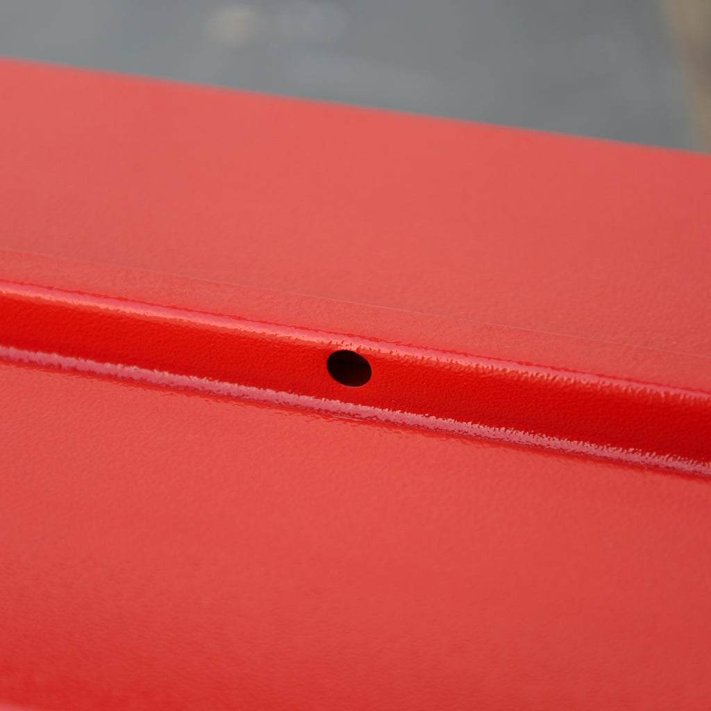 • Gehäuse aus Stahl: Der Werkzeugkasten besteht aus belastbarem Stahl. Das Material ist kratzfest und rostfrei.