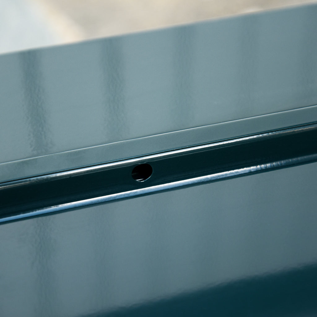 • Gehäuse aus Stahl: Der Werkzeugkasten besteht aus belastbarem Stahl. Das Material ist kratzfest und rostfrei.