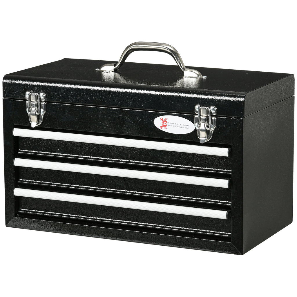 - Ein abschließbarer Werkzeugkasten mit Tragegriff für sichere Aufbewahrung und Portabilität