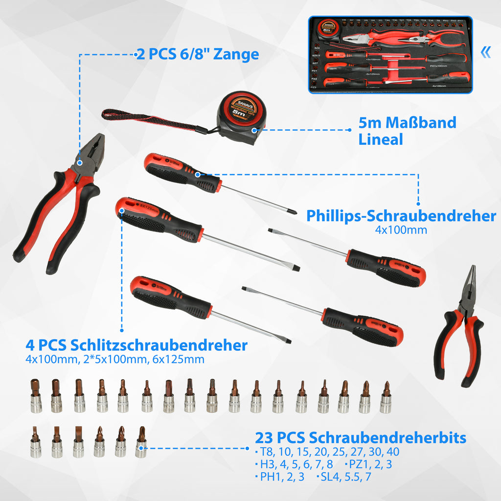 - 116-teiliger Werkzeugsatz für die meisten täglichen Reparaturen im Haushalt