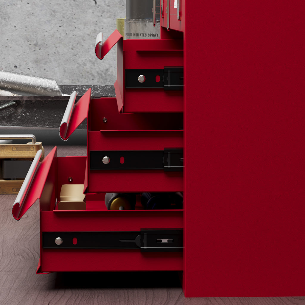 - Drei Schubladen und ein oberes Staufach der Werkzeugbox bieten viel Platz für Werkzeuge und Zubehör