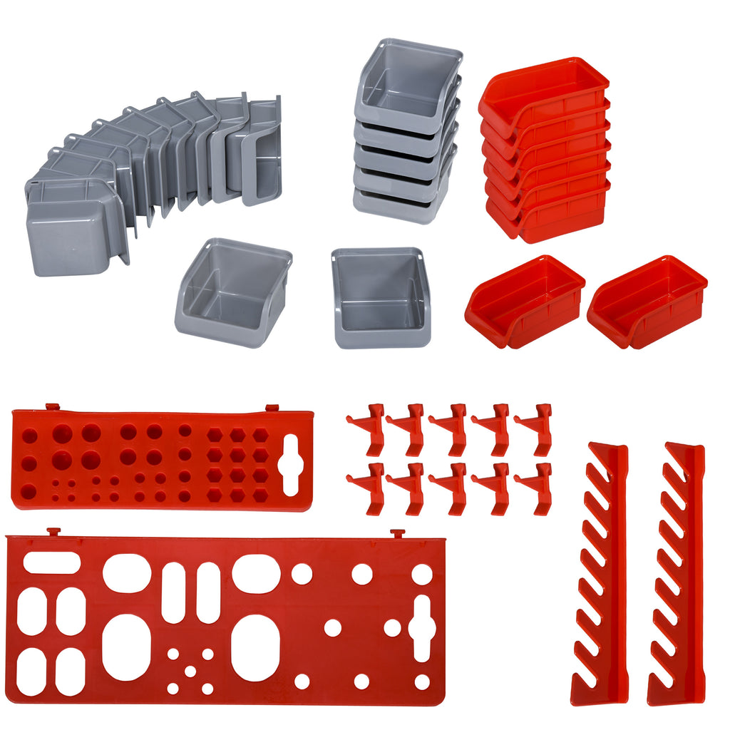 Diese große, 44-teilige Werkzeugwand von DURHAND ermöglicht eine platzsparende und gutsortierte Aufbewahrung Ihrer Werkzeuge und zahlreicher Kleinteile. Die abnehmbaren und stapelbaren Boxen bieten viel Platz für Schrauben und andere Kleinteile. Die Werkzeugwand kann horizontal oder vertikal an der Wand angebracht werden, sodass Sie reichlich Bodenfläche sparen. Aus hochstabilem Kunststoff gefertigt, trägt diese Werkzeugwand ein Gesamtgewicht bis zu 30 kg.