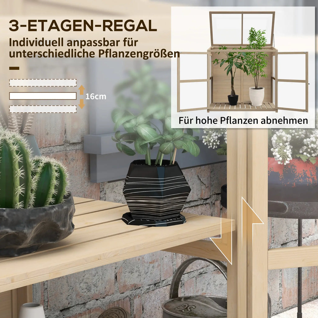 Entdecken Sie den Charme des Gärtnerns zu Hause mit dem Outsunny Frühbeetkasten aus Holz! Das robuste Design und die hochtransparenten Acrylplatten mit über 90% Lichtdurchlässigkeit lassen Ihre Pflanzen gut gedeihen. Genießen Sie die Vielseitigkeit, die dem Wachstum der Pflanzen in jeder Phase angepasst ist, dank des zweistufigen Innenraums und der dreistufig verstellbaren Mittelablage. Und mit den leicht zugänglichen Doppeltüren und dem verstellbaren Dach war Gartenpflege noch nie so einfach.