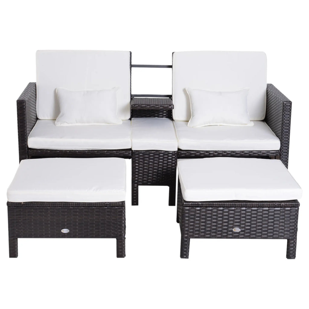 Diese moderne Polyrattan-Sofagarnitur von Outsunny ist der ideale Entspannungsort für warme Sonnentage. Sie zeichnet sich durch ein elegantes Design und hochwertige Verarbeitung aus. Der Rahmen aus rostfreiem Metall verleiht der Garnitur eine besonders hohe Stabilität. Umhüllt mit einer wetterfesten Verkleidung aus Polyrattan, eignet sich dieses Gartenset ideal für die dauerhafte Anwendung im Garten. Dicke Kissen und wasserabweisende Bezüge sorgen zudem für einen ausgesprochen hohen Sitzkomfort.