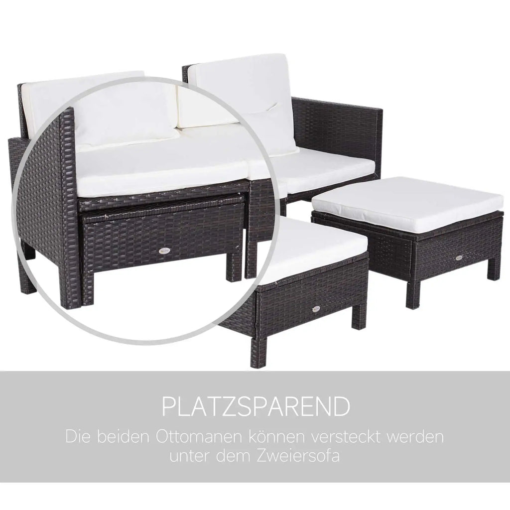 - ✔ Bestehend aus 1 Doppelsofa, 2 Fußhockern, inkl. Sitz- und Rückenkissen