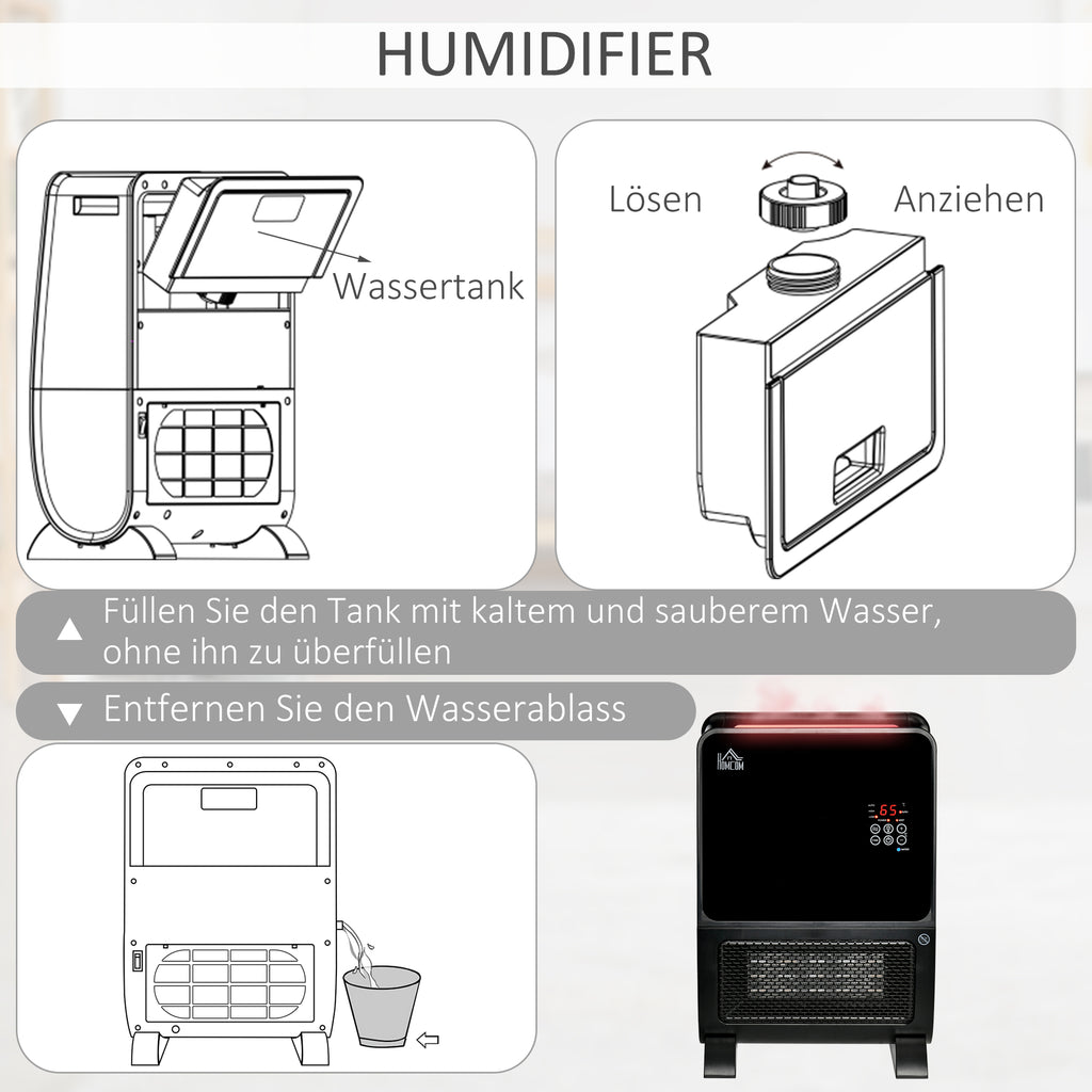 Bleiben Sie an kalten Winternachmittagen und -nächten angenehm warm mit diesem Heizlüfter und Luftbefeuchter von HOMCOM. Verwenden Sie ihn nicht nur im Winter als Heizung, sondern auch im Sommer oder Herbst als Luftbefeuchter. Daneben kann er als Luftfilter mit UV-Licht eingesetzt werden. Dieser Heizlüfter ist einfach zu bedienen und die perfekte Ergänzung für Ihr Zuhause und Büro. Er verfügt über 3 Modi, um verschiedene Bedürfnisse zu erfüllen, und ist GS-zertifiziert.
