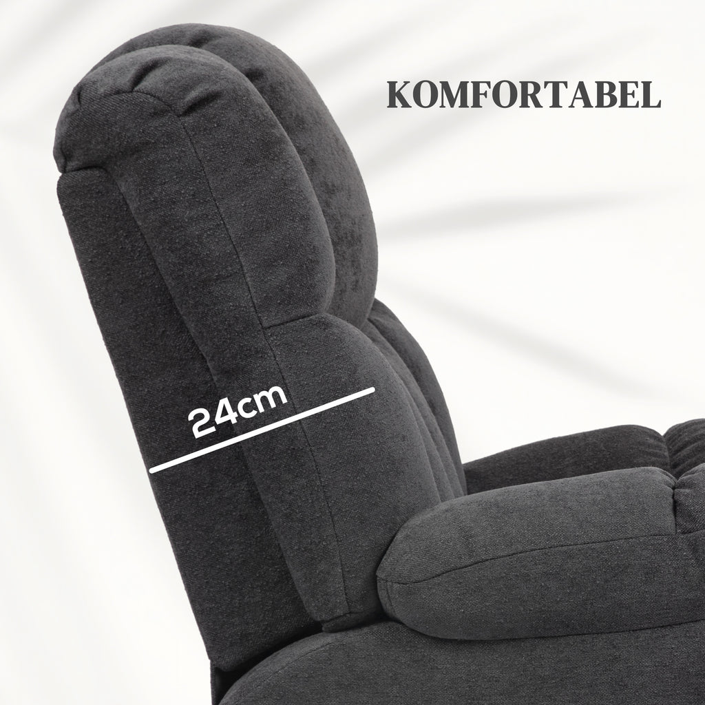 Erleben Sie unvergleichlichen Komfort mit dem HOMCOM Fernsehsessel – die ideale Lösung für mehr Lebensqualität. Dieser elektrische Sessel ermöglicht es Ihnen, mit nur einem Knopfdruck mühelos zwischen sitzender und liegender Position zu wechseln. Die großzügige Polsterung und der weiche Bezug bieten ein außergewöhnliches Sitzgefühl, während der robuste Rahmen für Langlebigkeit sorgt. Gerade perfekt für Personen mit Mobilitätsproblemen, bringt dieser TV-Sessel Bequemlichkeit in Ihren Alltag.
