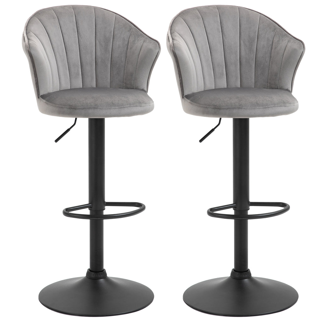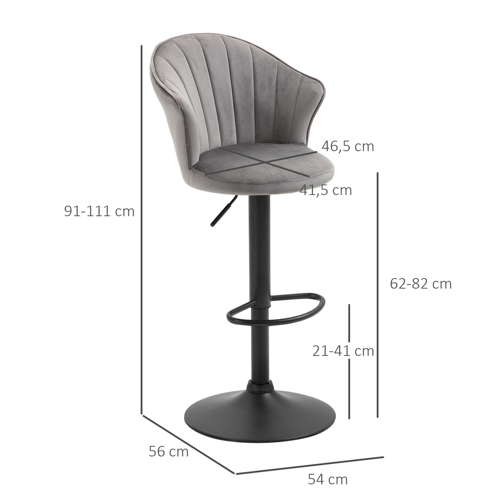 Verwenden Sie diese beiden Hocker von HOMCOM, um Ihrer Küchentheke oder Ihrer Hausbar eine elegante Note zu verleihen. Hocker mit einer Oberfläche aus Flanell bietet viel Eleganz. Die geschwungene Rückenlehne und das armlose Design unterstützen den Körper und geben ihm Bewegungsfreiheit. Dieser Hocker hat große runde Füße aus Metall, die während des Gebrauchs den Hocker aufrecht und stabil halten.