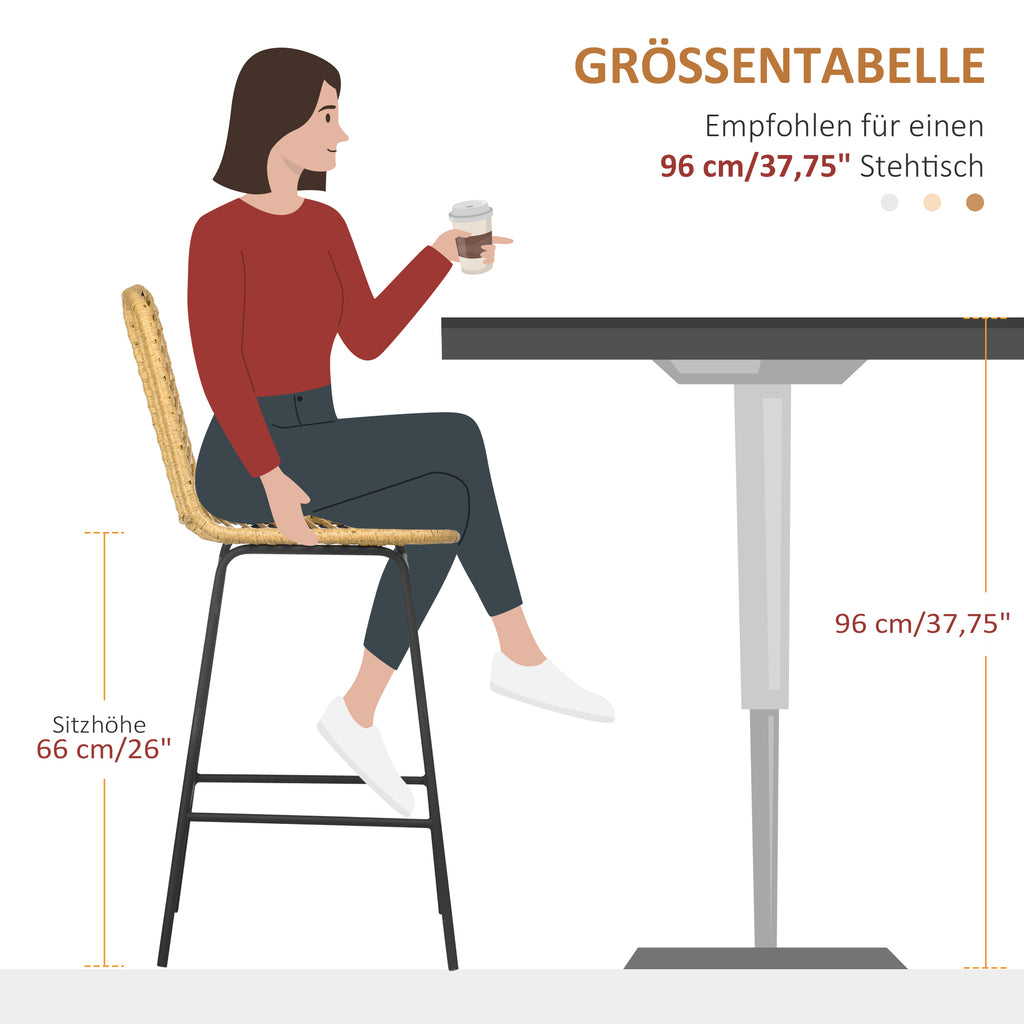 Erleben Sie Stil und Komfort mit dem HOMCOM 2er Set Barhocker im trendigen Boho-Design. Ideal für den modernen, jungen Profi, kombinieren diese Stühle Rattanoptik mit stabilen Stahlbeinen für Langlebigkeit und Stabilität. Die ergonomische Fußstütze erhöht den Sitzkomfort, macht diese Hocker zur perfekten Ergänzung für Wohnraum oder Bar. Holen Sie sich jetzt diesen Mix aus Design und Funktionalität.