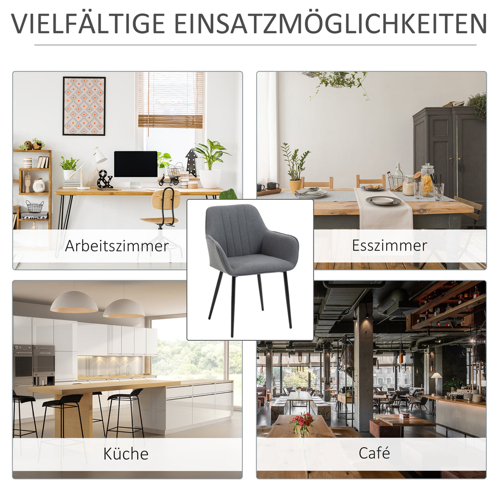 Suchen Sie bequeme Stühle, um Ihr neues Zuhause zu dekorieren? Dieses Set aus 2 gepolsterten HOMCOM Stühlen ist eine gute Wahl. Sein skandinavischer-Stil lässt sich leicht mit Ihren anderen Möbeln und Dekorationen kombinieren. Diese Stühle verfügen über einen atmungsaktiven Polyester-Bezug, ergonomisch geschwungene Rückenlehnen und Armlehnen sowie stabile Metallbeine, um Ihnen einen bequemen und stabilen Sitz zu bieten. Sehr gut geeignet für Ihr Wohnzimmer, Esszimmer, Arbeitszimmer usw.