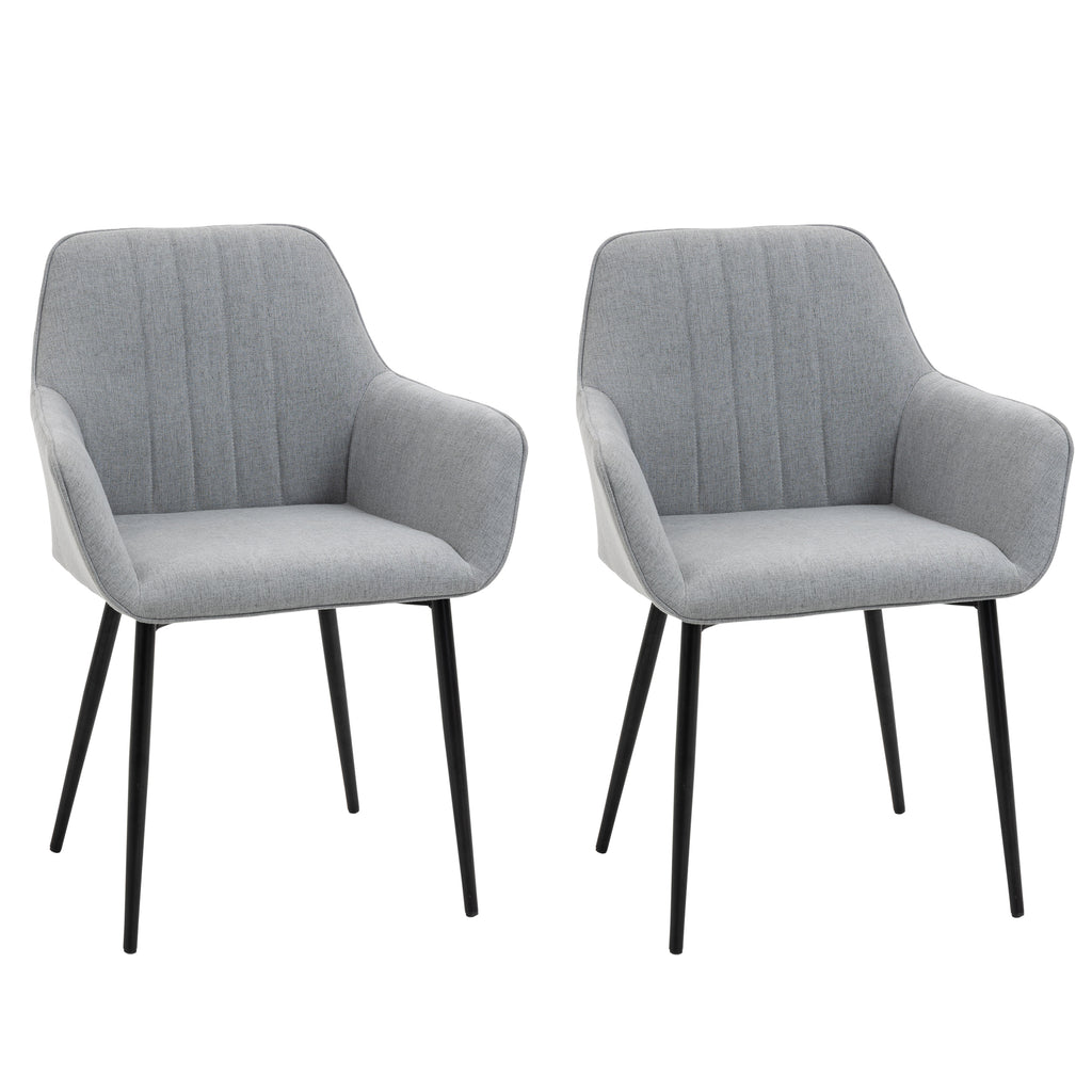 Suchen Sie bequeme Stühle, um Ihr neues Zuhause zu dekorieren? Dieses Set aus 2 gepolsterten HOMCOM Stühlen ist eine gute Wahl. Sein skandinavischer-Stil lässt sich leicht mit Ihren anderen Möbeln und Dekorationen kombinieren. Diese Stühle verfügen über einen atmungsaktiven Polyester-Bezug, ergonomisch geschwungene Rückenlehnen und Armlehnen sowie stabile Metallbeine, um Ihnen einen bequemen und stabilen Sitz zu bieten. Sehr gut geeignet für Ihr Wohnzimmer, Esszimmer, Arbeitszimmer usw.