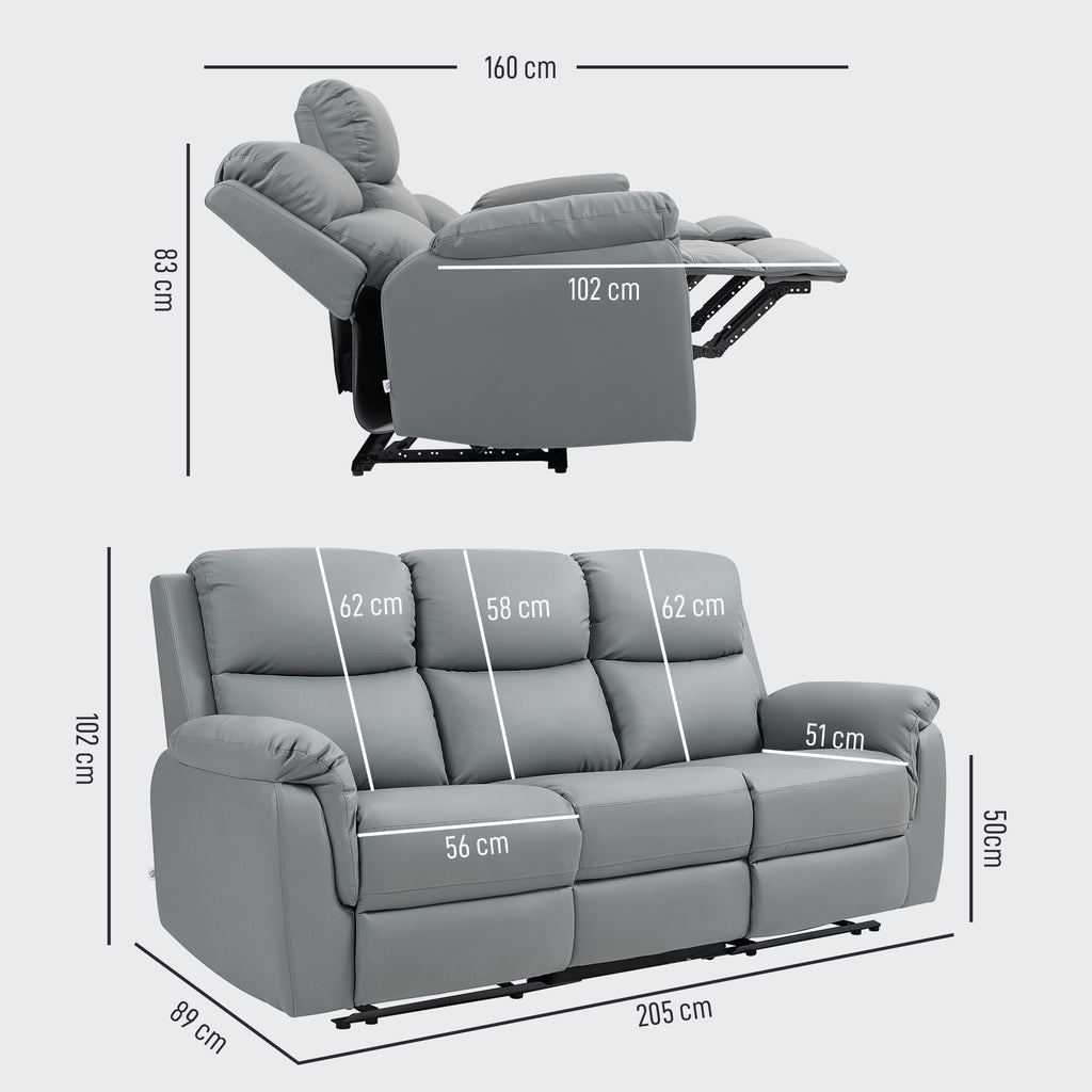 - Gesamtabmessungen: (Zurückgelehnt) 205B x 160T x 83H cm