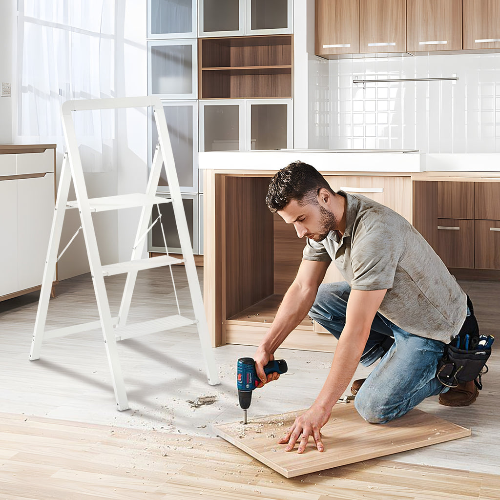 • Leichte Tragbarkeit: Diese kompakte zweistufige Leiter ermöglicht einfaches Erreichen hoher Regale und schwer zugänglicher Bereiche, ideal für Dekoration und Reinigung in Haus und Garten.