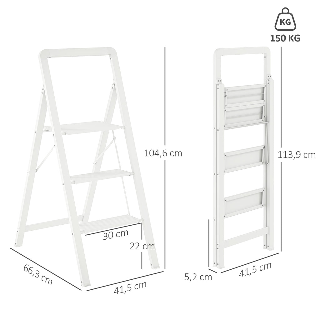 HOMCOM 3-stufige Trittleiter, Aluminum faltbar, rutschfeste Plattform, Weiß