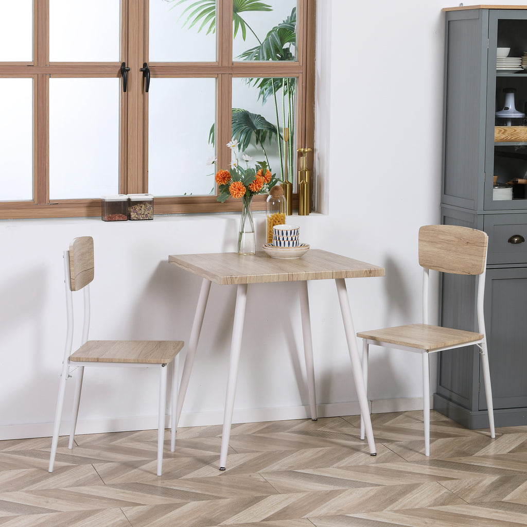 HOMCOM 3-teilige Essgruppe Esstisch mit 2 Stühlen Esszimmergruppe mit Metallgestell Sitzgruppe für Esszimmer, Küche Nautr+Weiß