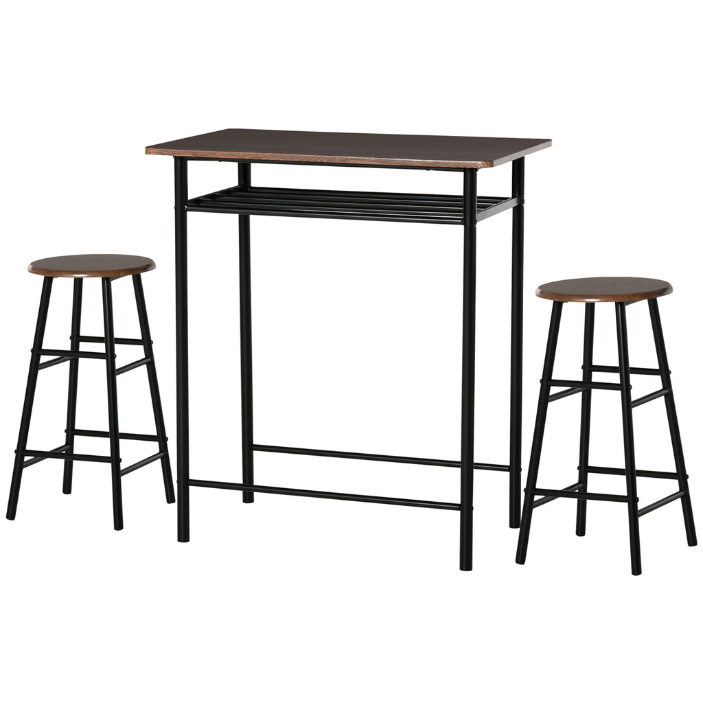 Entdecken Sie das stilvolle 3-teilige Bartisch Set von HOMCOM, das perfekt für kleine Küchen geeignet ist. Der elegante Bartisch und die zwei Barhocker vereinen Funktionalität und modernes Design. Ein praktisches Ablagefach unter der Tischplatte bietet Platz für Zeitschriften, Obst und Küchenzubehör, sodass Sie alles griffbereit haben. Im beliebten Industriestil gehalten und mit einem Metallrahmen ausgestattet, garantiert diese Essgruppe Stabilität und Langlebigkeit.