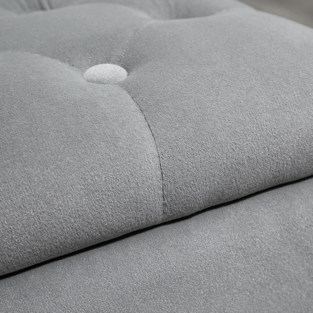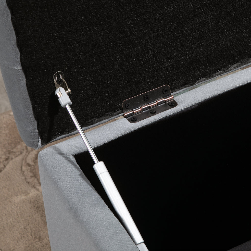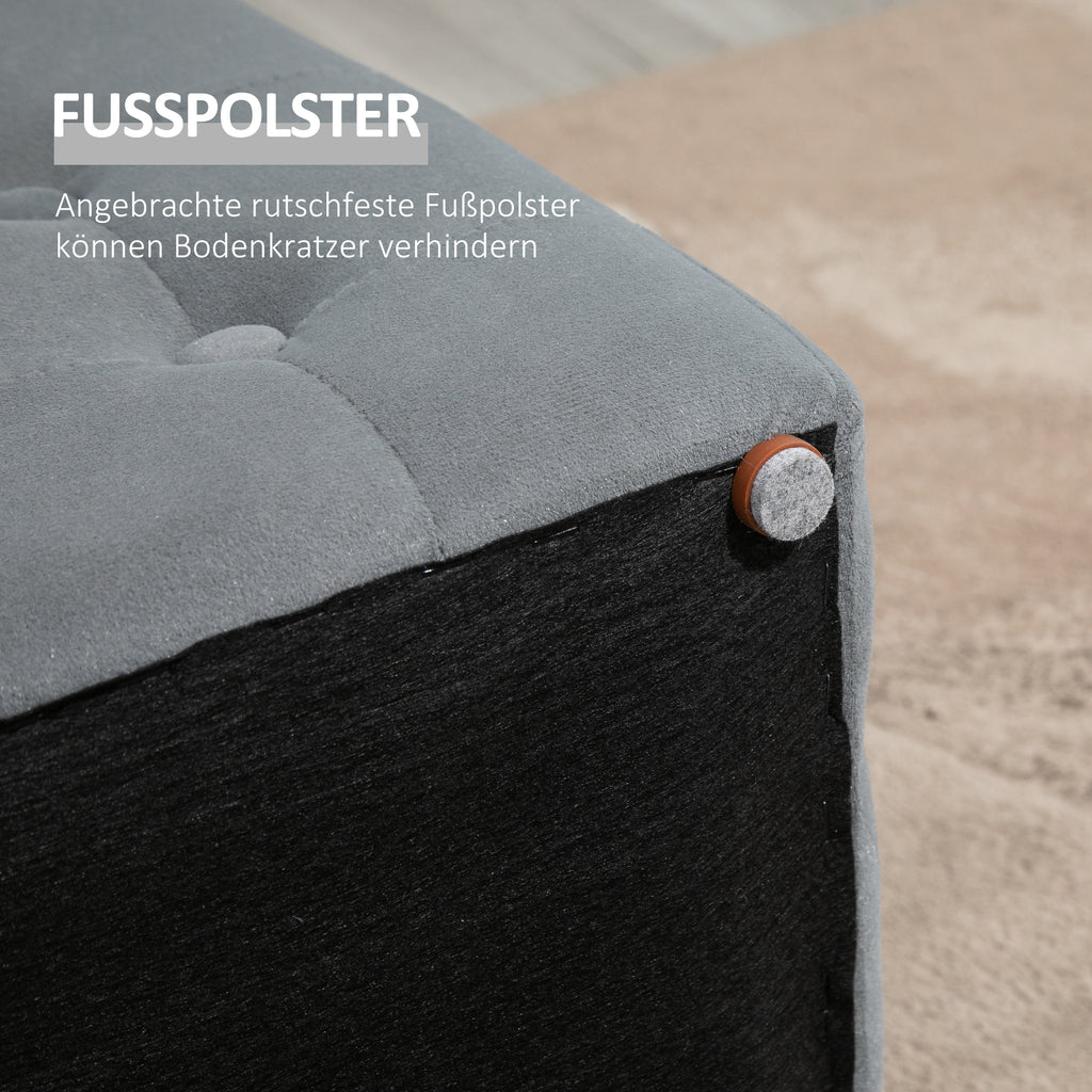 HOMCOM 3-teiliges Set mit Stauraum, 2 x Sitzhocker, Polster-Sitztruhe, Fußhocker, Aufbewahrungsbox, Fußablage, belastbar bis 130 kg, Mikrofaserstoff, Schaumstoff, 75 x 40 x 42 cm, Hellgrau