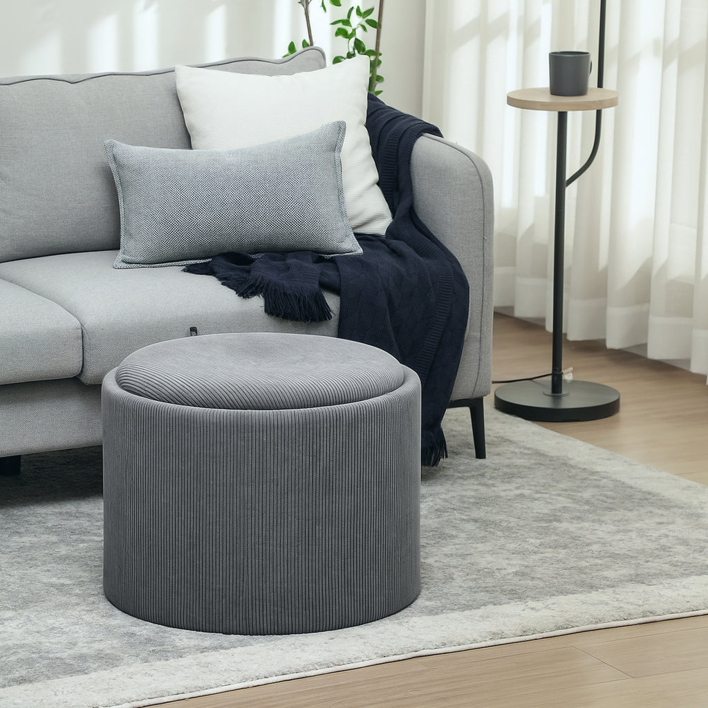Entdecken Sie den reizvollen HOMCOM Aufbewahrungshocker, eine perfekte Mischung aus Stil und Funktion. Unter seinem abnehmbaren Deckel verbirgt dieser Sitzhocker reichlich Platz, ideal für Bettwäsche oder Magazine. Weicher Cord und dichter Schaumstoff sorgen für bequemes Sitzen oder Füße hochlegen. Sein anpassungsfähiges Design harmoniert mühelos mit jeder Einrichtung und macht Ordnung einfach.