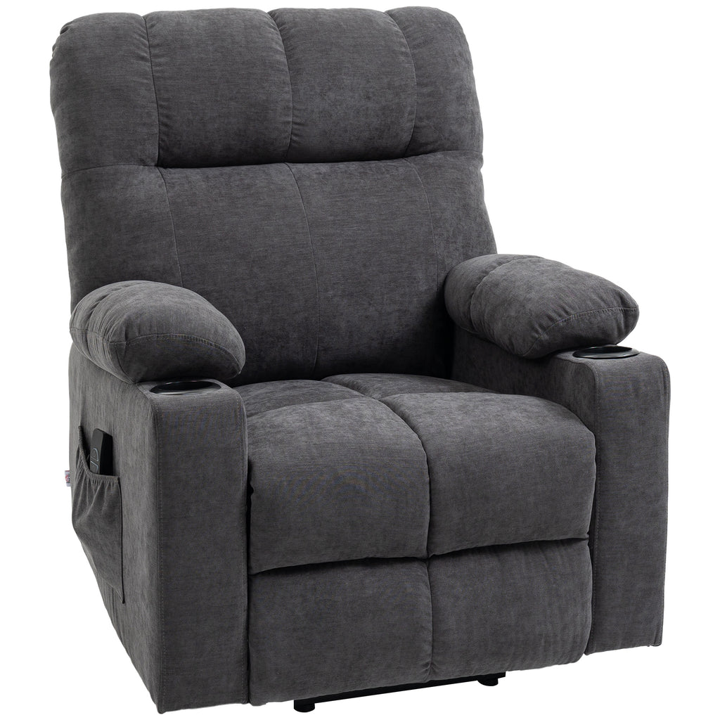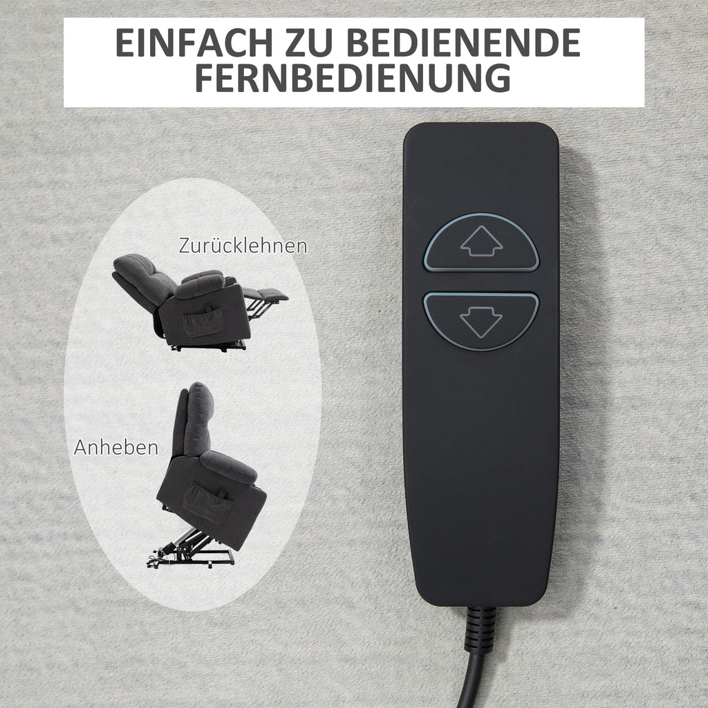 Die Art und Weise, wie Sie sich entspannen, wird sich für immer verändern, dank dieses Fernsehsessels mit Aufstehhilfe von HOMCOM. Legen Sie Ihre Füße auf die eingebaute Fußstütze und stellen Sie die Rückenlehne in Ihre Lieblingsposition ein - lehnen Sie sich zurück, schauen Sie fern oder machen Sie ein Nickerchen. Sie werden auf dick gepolstertem, weichem Stoff ausruhen, während die acht Massagepunkte des Relaxsessels zur Linderung von Muskelverspannungen beitragen.