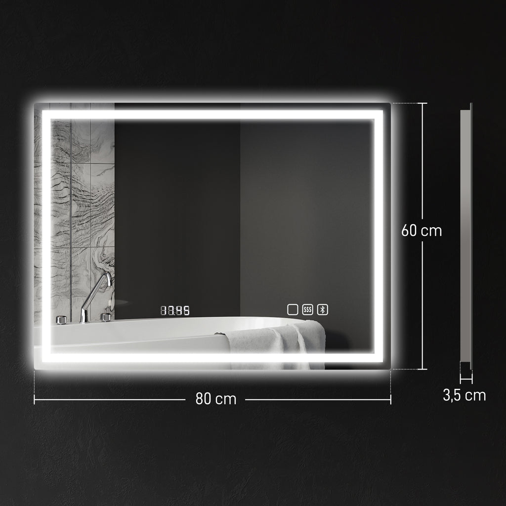 Optimieren Sie Ihre Morgenroutine mit dem intelligenten HOMCOM LED-Spiegel! Mit anpassbarer Helligkeit und drei Lichttemperaturen sorgt dieser Badezimmerspiegel stets für die richtige Stimmung. Das eingebaute Anti-Beschlags-Pad garantiert jederzeit klare Sicht und dank Bluetooth spielt der Spiegel Ihre Lieblingshits, während Sie sich vorbereiten. Mehr als ein Spiegel: Ein echtes Lifestyle-Upgrade.
