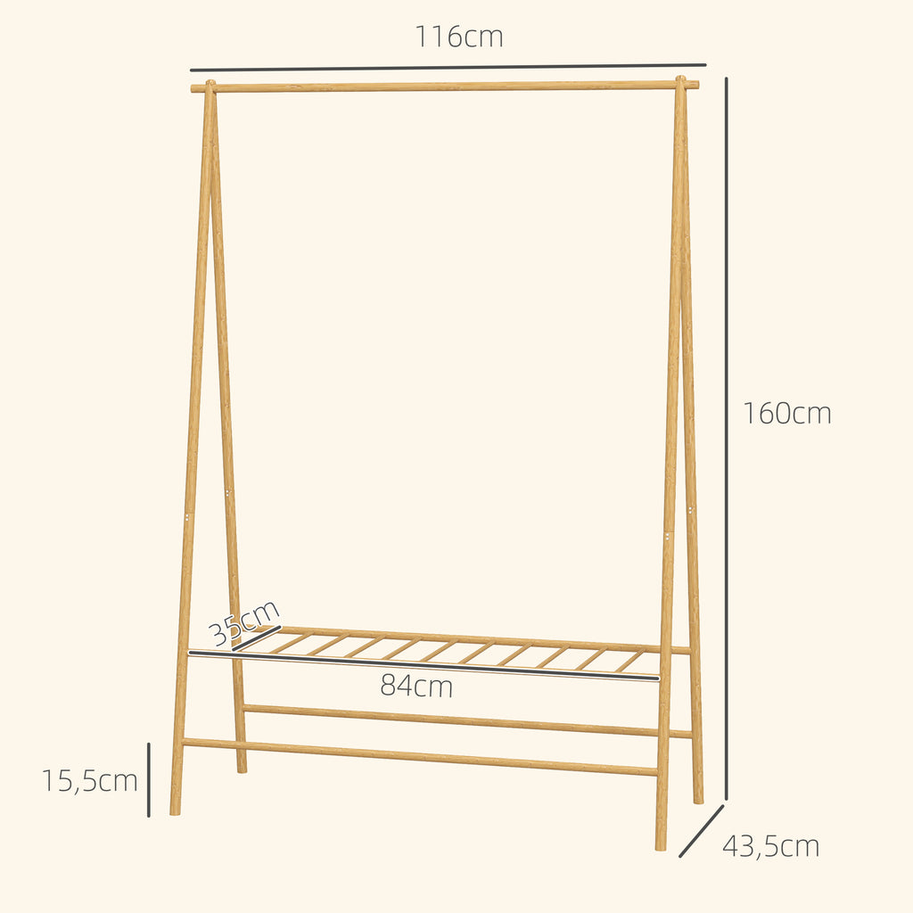 Halten Sie übersichtliche Ordnung in Ihrem Zuhause mit dem HOMCOM Kleiderständer! Dieser elegante Holz Garderobenständer bietet eine obere Hängeleiste mit zwei Haken für Mäntel und Hemden sowie ein unteres Schuhregal für bis zu vier Paar Schuhe. Ideal für Flur oder Schlafzimmer geeignet, sorgt der freistehende Jackenständer dafür, dass Ihre Kleidung griffbereit und Ihr Wohnraum aufgeräumt bleibt.