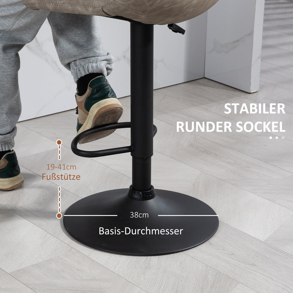 Verleihen Sie Ihrer Hausbar mehr Geschmack mit diesem stilvollen Barhocker-Duo im Retro-Design. Die neutralen Farbtöne des Barstuhls fügen sich mühelos in nahezu jedes Interieur ein und schaffen sofort eine harmonische Atmosphäre. Die drehbaren Sitze des Küchenhockers ohne Armlehnen bieten Ihnen die Freiheit, sich bequem zu bewegen, während die aufrechte Rückenlehne optimalen Halt für entspannte Stunden am Tisch bietet. Genießen Sie gesellige Abende mit Freunden und Familie.
