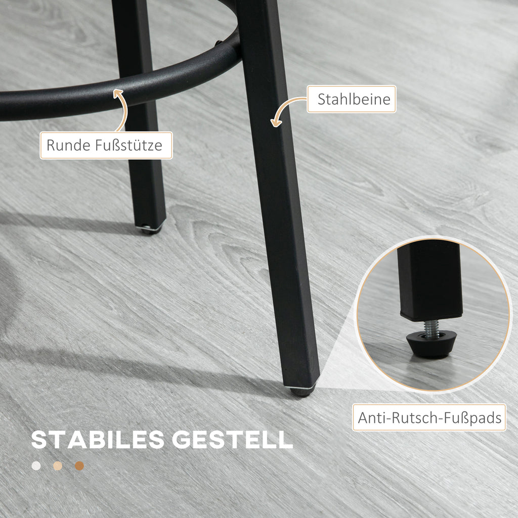 Mit diesen HOMCOM Barstühlen wird jeder Raum zum Geschmacks-Hotspot. Das robuste Stahlgestell garantiert Stabilität und verfügt über eine bequeme Fußstütze. Die bequemen, stabilen Sitze in Holzoptik sind ausgesprochen belastbar und stellen einen schönen Blickfang für alle dar, denen Industrial Design gefällt. Mit einer Sitzhöhe von 65 cm passen diese Hocker perfekt zu Tischen und Theken mit einer Höhe von 89 bis 99 cm. Jetzt steht dem stilsicheren Trink- und Essgenuss nichts mehr im Weg!