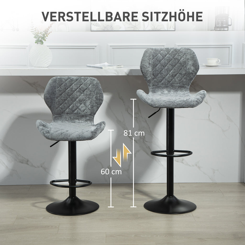 Erleben Sie ultimativen Komfort mit unseren eleganten Barhockern mit Lehne im 2er-Set, hergestellt aus weichem, luftdurchlässigem Stoff und dichtem Schaumstoff. Diese Tresenhocker sind speziell für höchsten Komfort designt, ideal für schnelle Snacks oder gesellige Abende. Verleihen Sie Ihrem Zuhause mit den verstellbaren Barhockern von HOMCOM eine Kombination aus Komfort, Stil und Funktionalität, für ein unvergleichliches Esserlebnis.