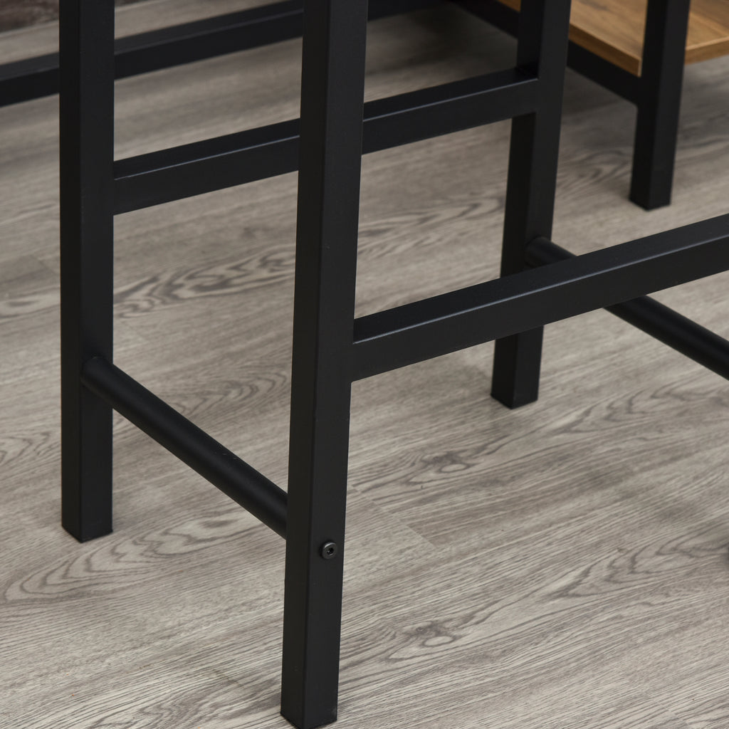 Unser dreiteiliges HOMCOM Esstisch und Stühle Set verfügt über Vintage-Holz Maserung Farbe Oberseite und schwarzen Metallrahmen, es ist nicht nur eine Bar-Bistro-Set, sondern auch eine offene Weinschrank mit 2-stufigen Weinregal und 2-reihigen Becherhalter für die einfache Lagerung von Wein und gleichzeitig Platz sparen. Hübsche Möbel für den Innenbereich, die beste Wahl für Küche, Kneipe, Wohnzimmer und Esszimmer.