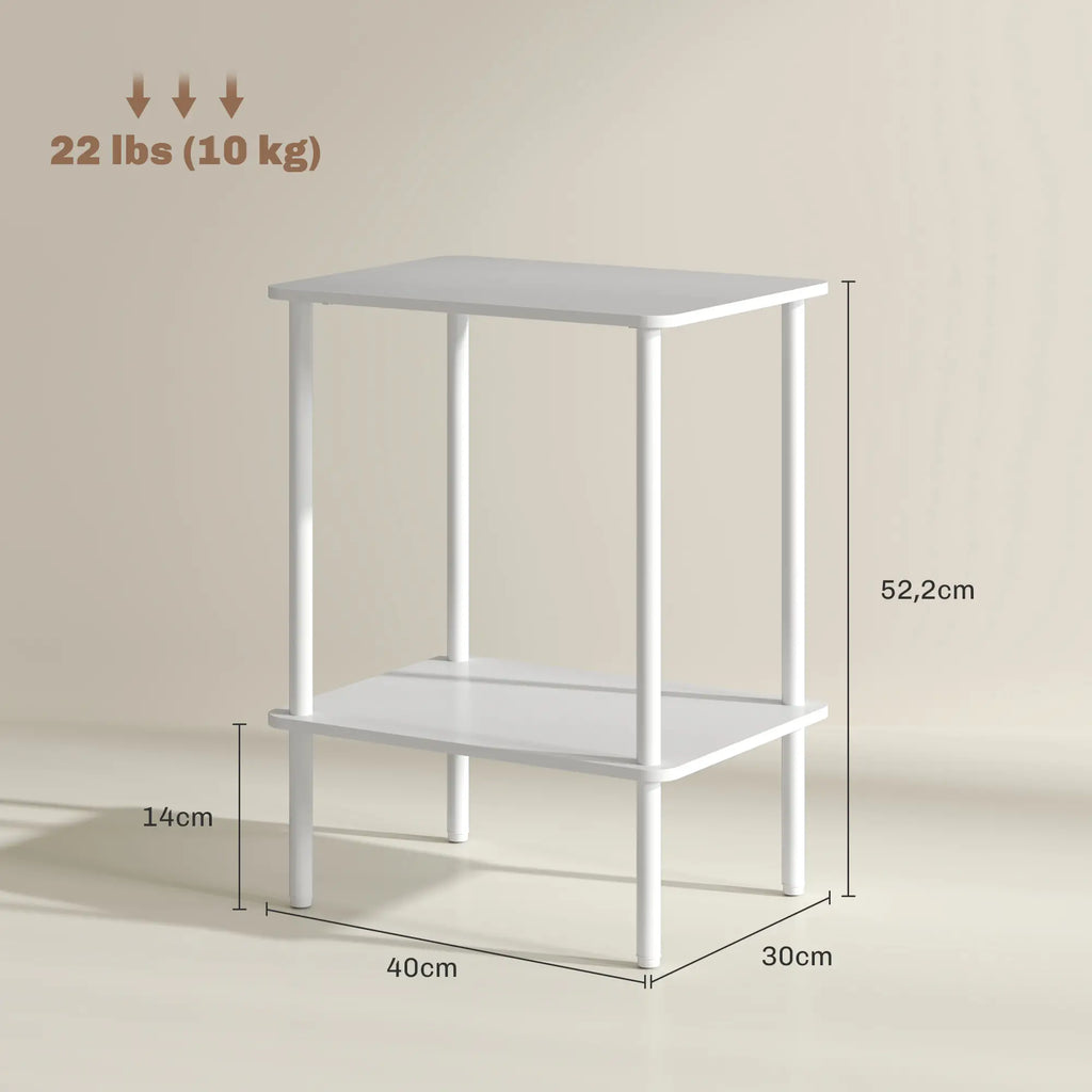 HOMCOM Moderner 2-stufiger Beistelltisch mit Aufbewahrungsfach und Metallrahmen für Wohnzimmer, Schlafzimmer, Weiß