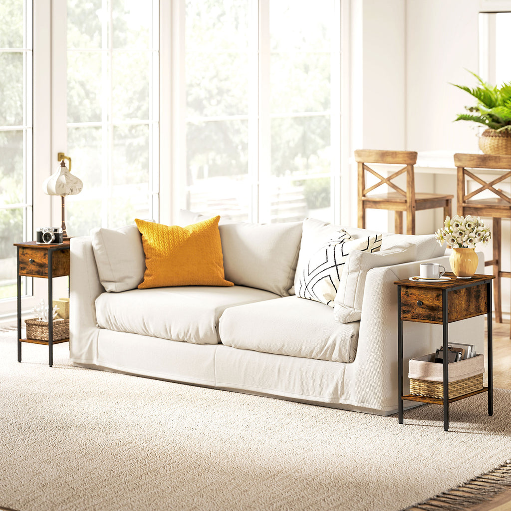 Erleben Sie den stilvollen schlanken Beistelltisch von HOMCOM, der praktisches Design mit modernem Charme vereint. Er verfügt über eine nützliche Schublade und ein offenes Fach, perfekt um Alltagsgegenstände zu verstauen. Rustikale, braune Paneele des Nachttisches im Industriestil und ein schicker schwarzer Rahmen bringen eine elegante Note in jeden Raum, egal ob als Nachttisch, Beistelltisch oder entzückender kleiner Couchtisch.