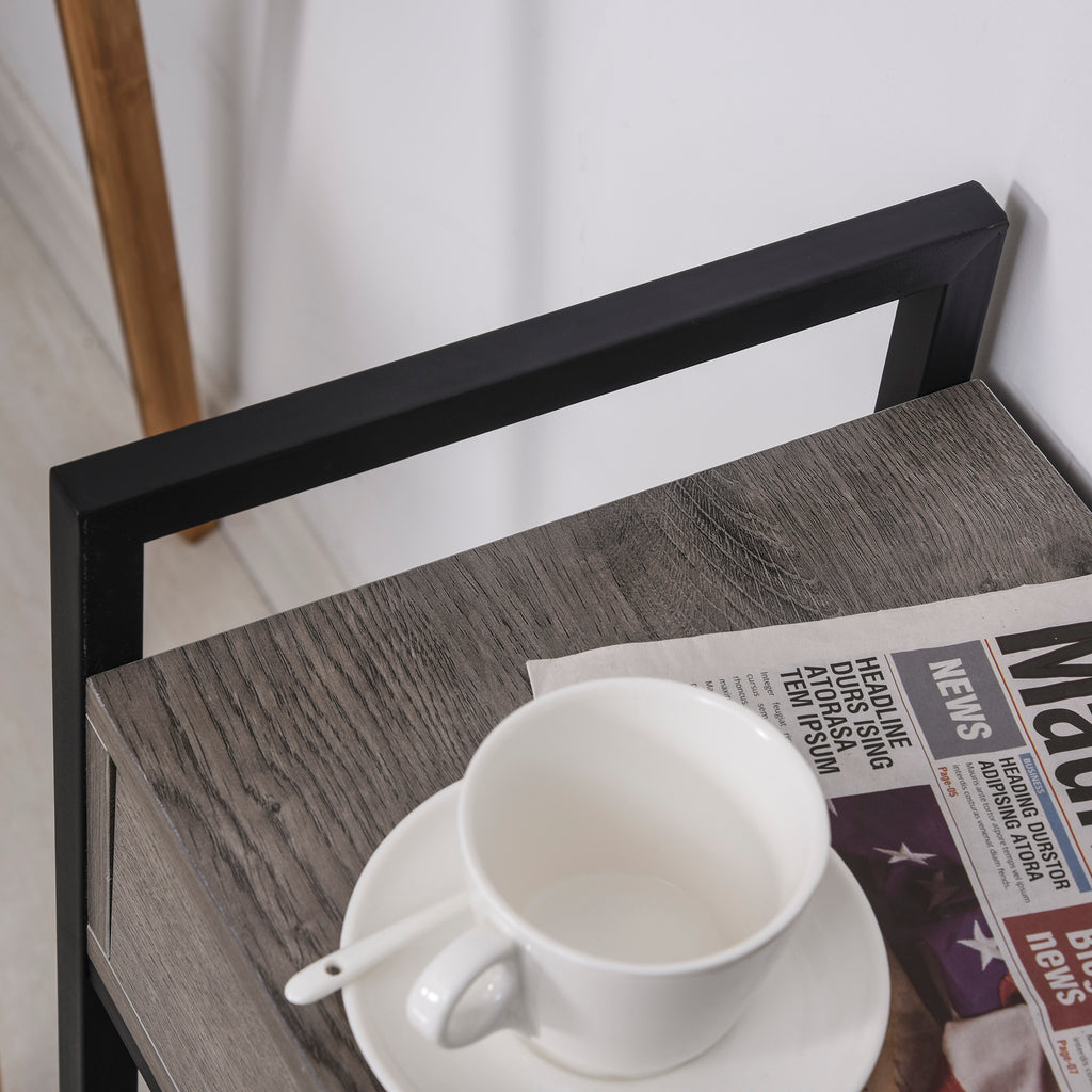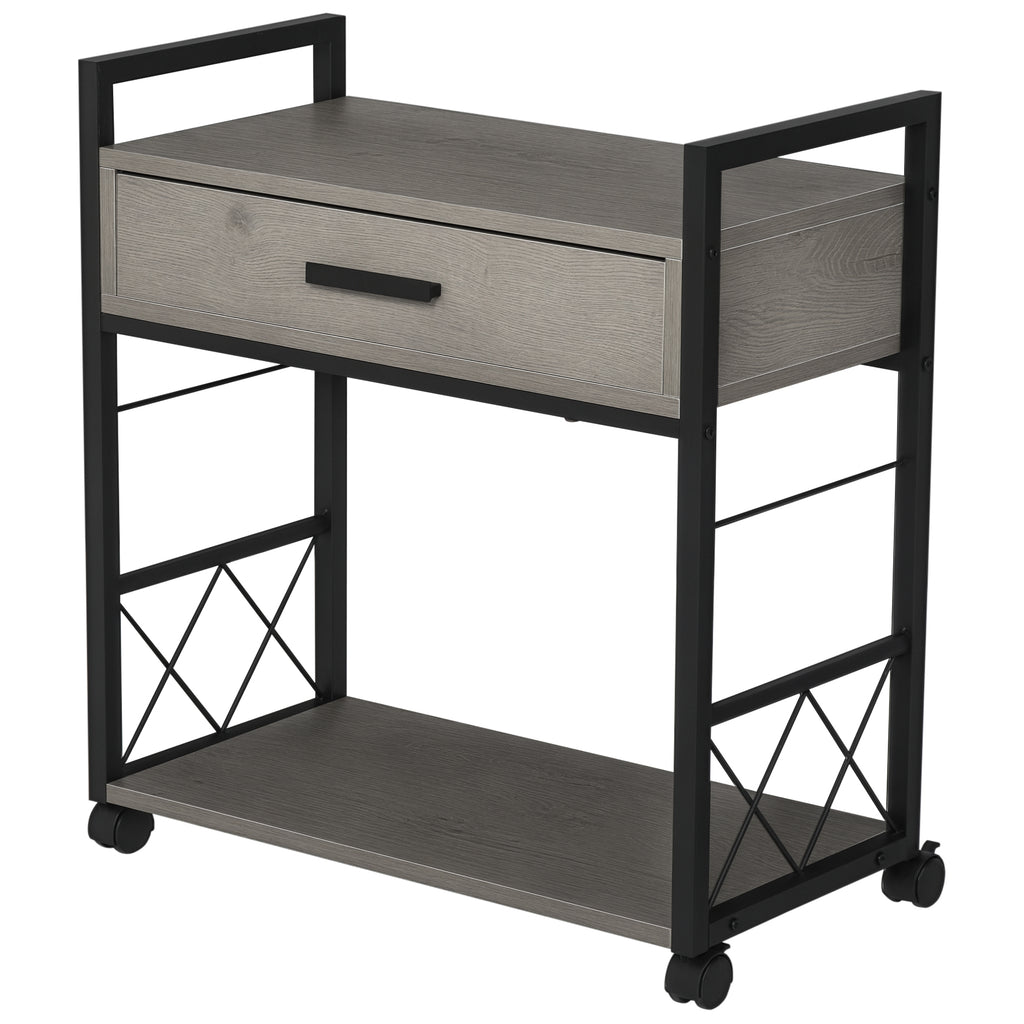 HOMCOM Beistelltisch Servierwagen mit Rädern Küchenwagen Kaffeetisch mit Schublade Ablage Sideboard beweglich Grau Spanplatte 60 x 30 x 65 cm