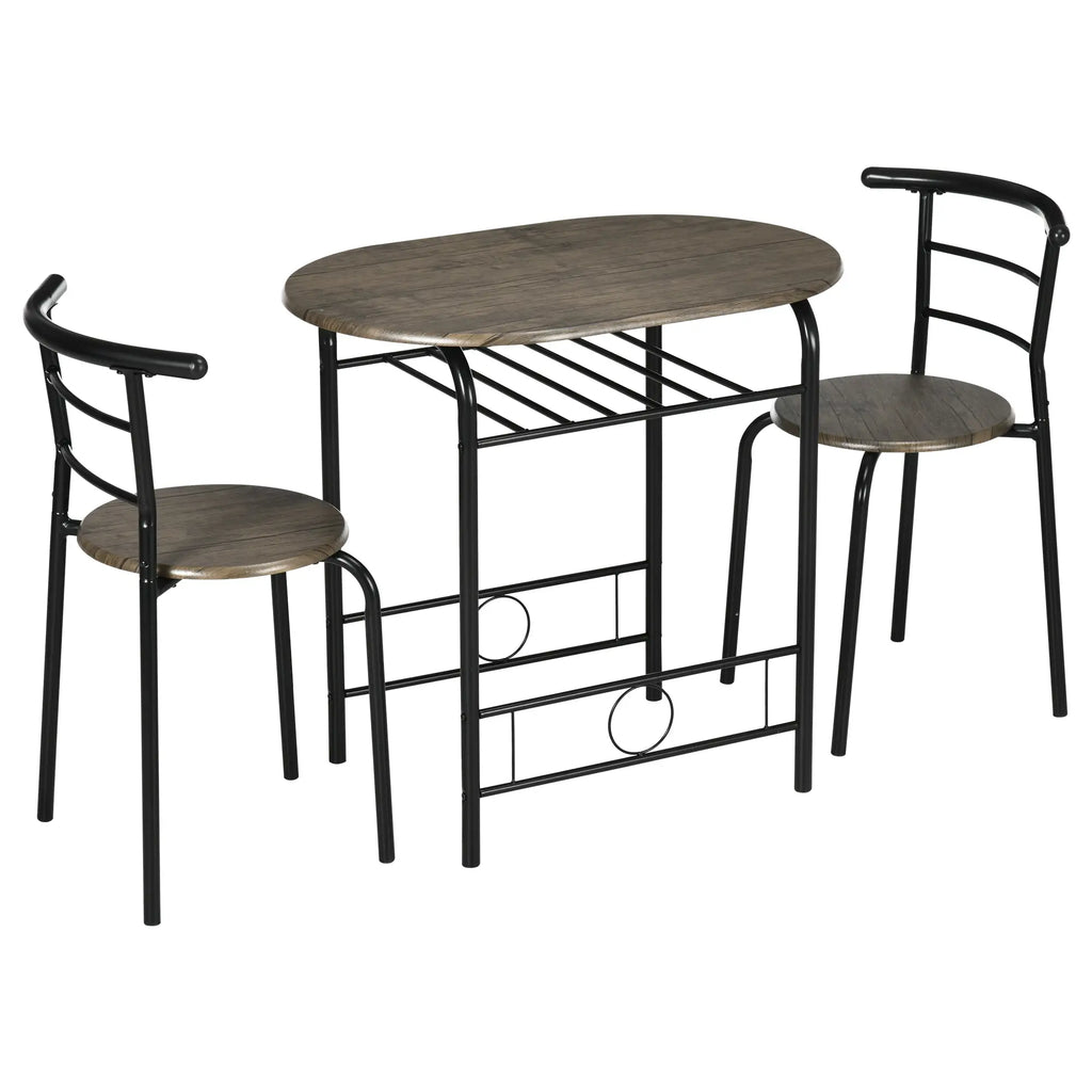 Machen Sie das Beste aus kleinem Wohnraum mit dem HOMCOM Bistro-Set. Dieses 3-teilige Set aus einem ovalen Tisch und zwei Stühlen ist perfekt für den Alltag und passt hervorragend in kleine Räume. Mit einem cleveren Regal unter dem Tisch für zusätzlichen Stauraum und Stühlen, die zur Raumersparnis unter den Tisch geschoben werden können, kombiniert dieses Set Stil mit Funktionalität – ideal für kleine Wohnungen.