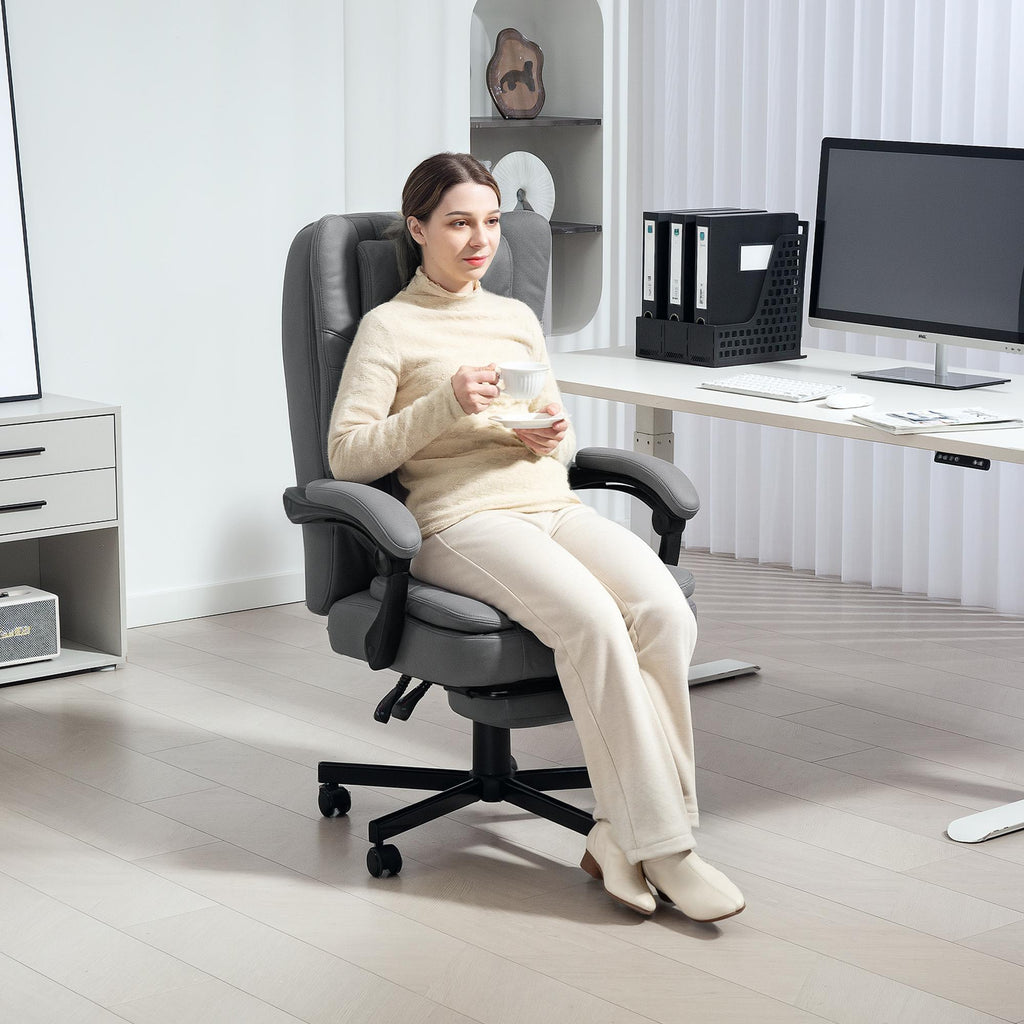 - 360° Drehbarkeit und Kunstleder-Räder des Chefsessels sorgen für sanfte Bewegungen auf jedem Boden