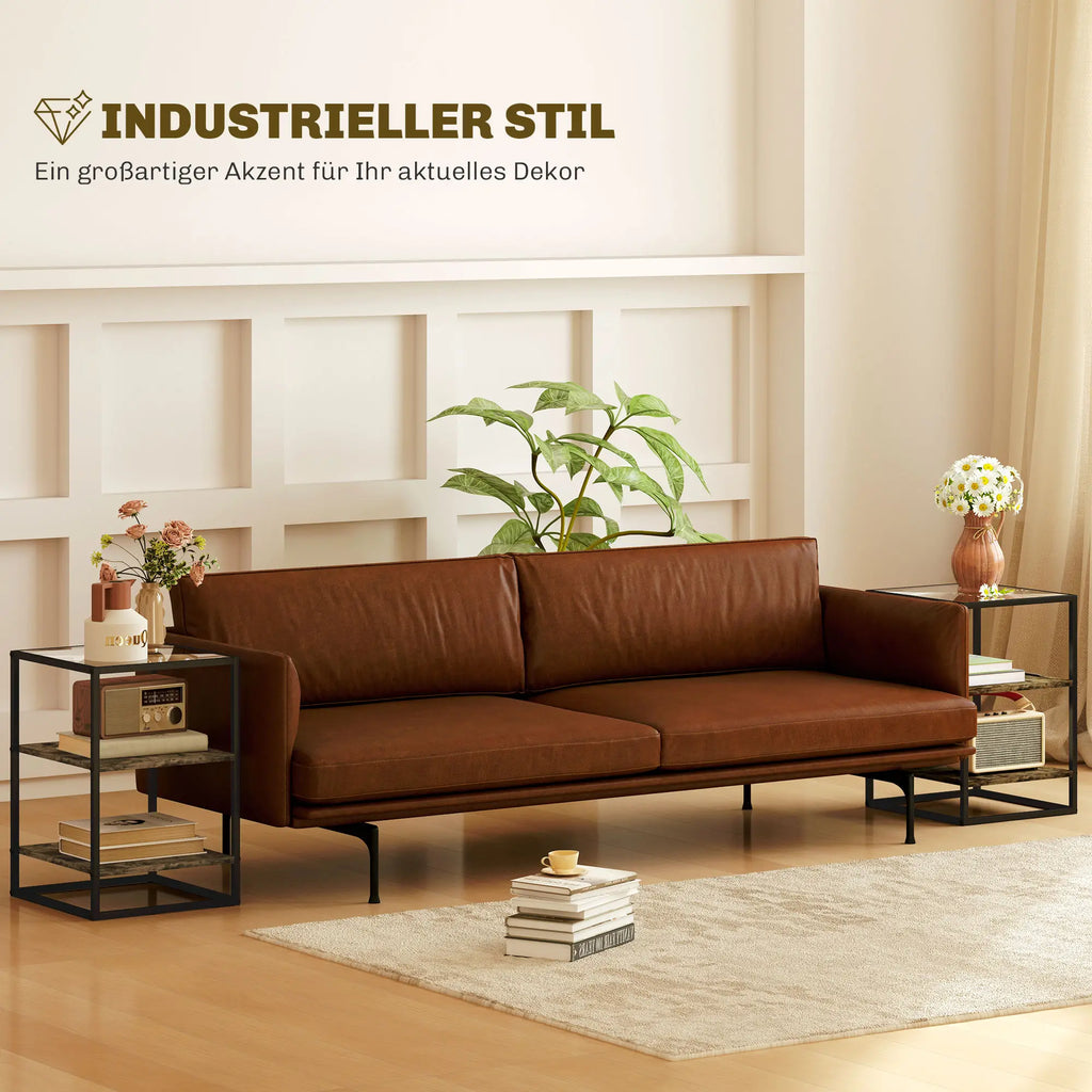 HOMCOM 2er-Set Beistelltische mit Glasplatte, 3-stufiges Design, Metallrahmen, für Wohnzimmer, Schlafzimmer, Braun