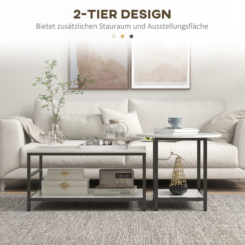 Entdecken Sie das elegante HOMCOM Couchtische in edler Marmoroptik. Die Couchtische bestehen aus zwei unterschiedlich geformten Tischen, die sich perfekt in jeden Wohnstil einfügen. Nutzen Sie die Tische nicht nur für Kaffee, Tee und Snacks, sondern setzen Sie stilvolle Akzente mit Büchern, Blumen und Dekorationen. Diese funktionalen und stilvollen Couchtische sind die ideale Ergänzung für Ihr Wohnzimmer und bieten vielseitige Nutzungsmöglichkeiten. Verleihen Sie Ihrem Zuhause das gewisse Etwas!