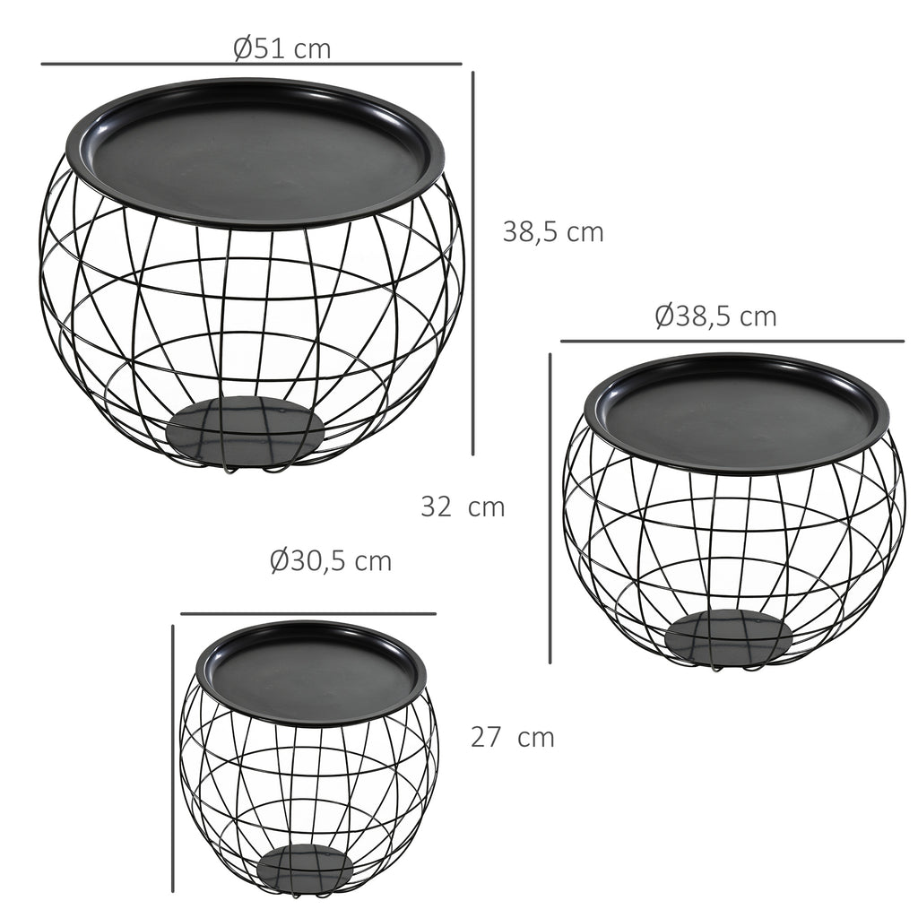 HOMCOM Couchtisch-Set 3-teilig, abnehmbare Tischplatte, Stahlrahmen, Schwarz glänzend, verschiedene Größen