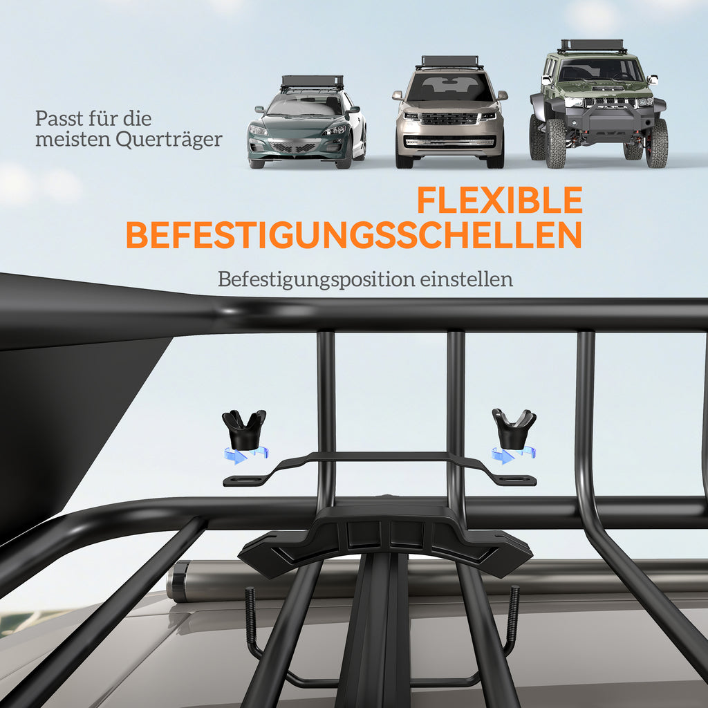 - Der robuste Stahlrahmen des Dachgepäckträgers ist korrosions- und wetterbeständig