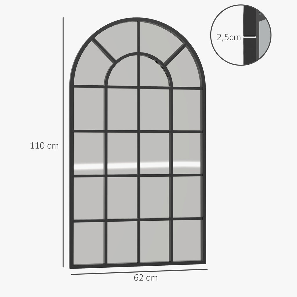 HOMCOM Dekospiegel großer Spiegel, Fensteroptik, Bogenförmig, inkl. Aufhängung. Schwarz + Spiegelglas