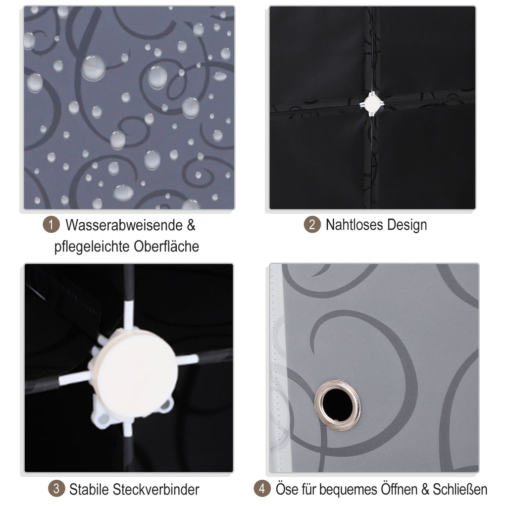 Verstauen Sie Ihre Kleidung mühelos mit dem innovativen DIY-Kleiderschrank von HOMCOM. Aus strapazierfähigem Kunststoff gefertigt, bietet er ein flexibles Design mit zwei großen und neun kleineren Würfeln, die sich beliebig zusammenfügen lassen. Ideal angepasst für jeden Raum, sorgt der Metallrahmen in jedem Würfel für Stabilität und trägt bis zu 30 kg. Die Montage und Demontage ist zudem kinderleicht und schnell erledigt.