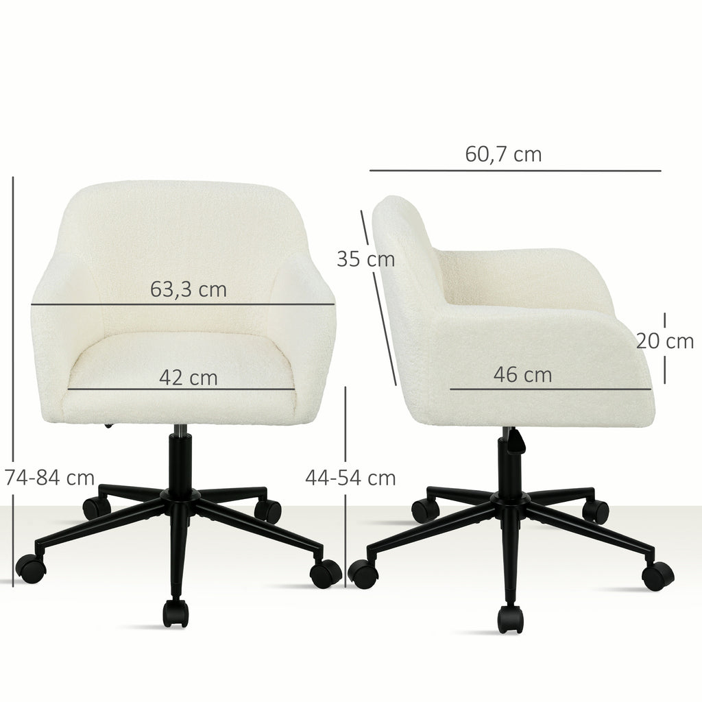 Genießen Sie den luxuriösen Komfort des HOMCOM Bürostuhls mit seinem kuscheligen, hautsympathischen Fleece-Stoff und dauerhaft stützendem Schaumstoff. Die elegante, geschwungene Form des Schreibtischstuhls verschönert jedes Arbeitszimmer oder den Schminkbereich. Mit einer Höhenverstellbarkeit von 44 bis 54 cm und einer mühelosen 360-Grad-Drehung sorgt er für individuellen Komfort und Beweglichkeit im Alltag.