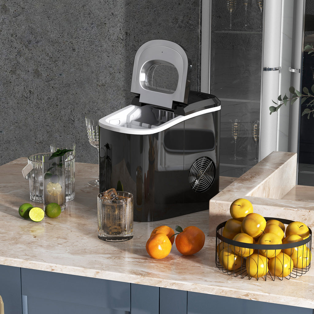 Suchen Sie eine Eismaschine, die Sie das ganze Jahr über mit frischem Eis versorgt Unsere tragbare und kompakte Eismaschine von HOMCOM kann Ihnen diesen Wunsch erfüllen. Die Maschine kann bis zu 12 kg Eiskugeln pro Tag produzieren. Sie können zwischen zwei Größen von Eiskugeln wählen. Die Maschine ist mit einem Sichtfenster ausgestattet, um Ihre Neugier über den Herstellungsprozess zu befriedigen. Nie wieder ein Sommer ohne erfrischendes Eis.