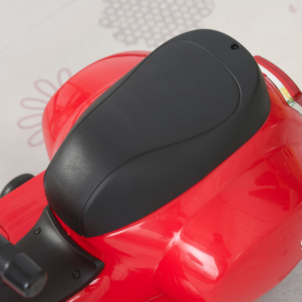 Mit diesem lizenzierten Kindervespa von HOMCOM warten viele Abenteuer auf ihre Kinder. Der geschwungene Kunstledersitz sorgt für einen hohen Komfort beim Fahren, während die funktionierende Hupe und die Scheinwerfer ein echtes und aufregendes Fahrgefühl vermitteln. Die Vespa ist mit zwei großen Rädern und zwei abnehmbaren Stabilisatoren ausgestattet, die für mehr Sicherheit und Gleichgewicht sorgen. Mit diesem Elektromotorrad von HOMCOM werden ihre Kinder es lieben Draußen zu spielen.