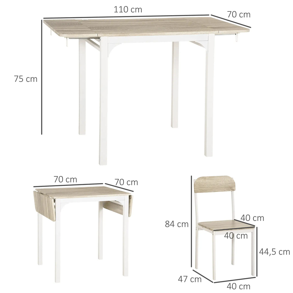 Sie suchen eine flexible Wohnraumlösung, die 3 Personen ausreichen Platz zum Essen und Entspannen bietet? Dann ist die 3-teilige Esszimmergruppe genau das Richtige für Sie! Der Tisch kann halb oder vollständig zusammengeklappt werden. Daher kann er bei Nichtgebrauch platzsparend aufbewahrt werden. Alle Stühle lassen sich problemlos unter den Tisch schieben, um zusätzlichen Raum zu schaffen. Dieser Klapptisch von HOMCOM ist ideale Lösung für kleine und kompakte Räume.