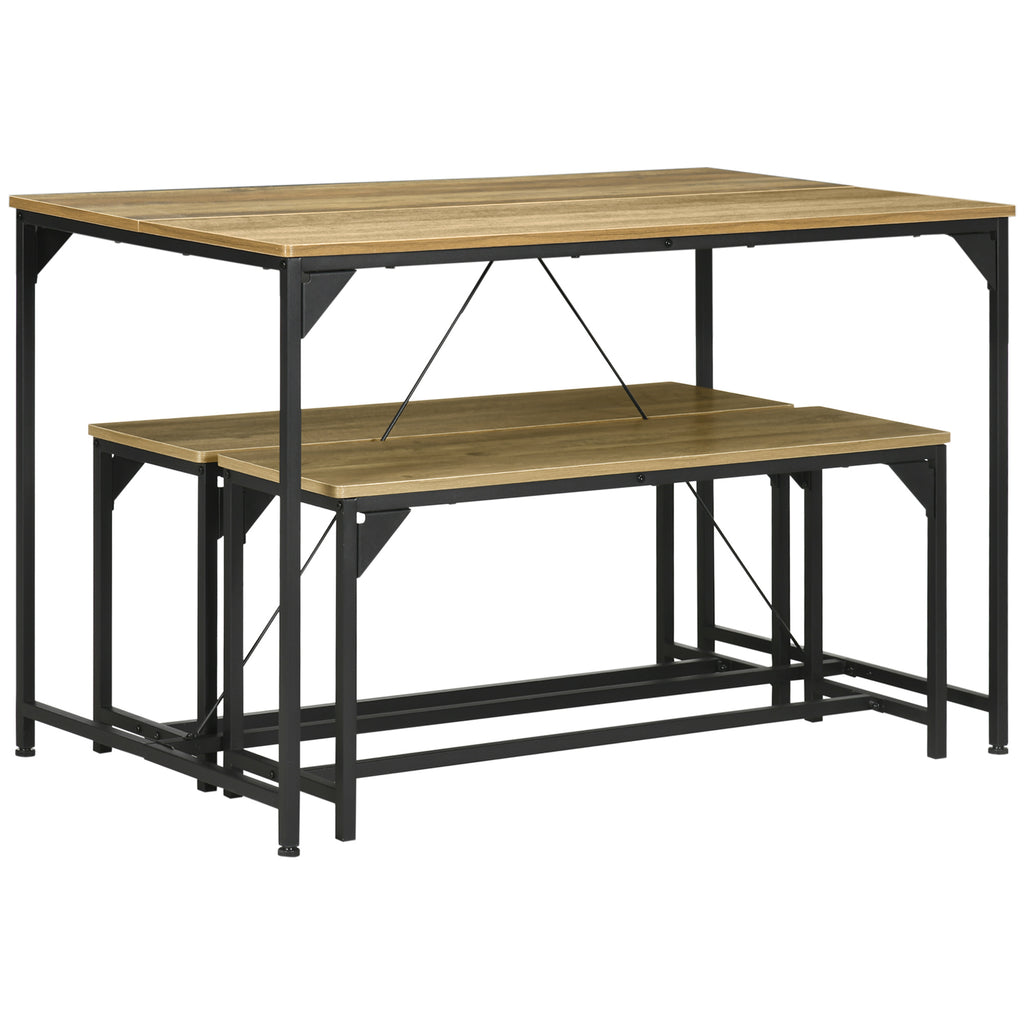 Die besten Zusammenkünfte finden in einer warmen und einladenden Umgebung statt. Dieses Esszimmerset von HOMCOM ist der Mittelpunkt jedes Essbereichs. Die glatte Oberfläche aus Holzwerkstoff und die schlanken Stahlbeine verleihen dieser Essgruppe ein trendiges Industriedesign. Ob zum Essen, Spielen oder Arbeiten, dieser lässige und moderne Tisch passt in jeden Raum, in dem eine zusätzliche Sitzgelegenheit benötigt wird.