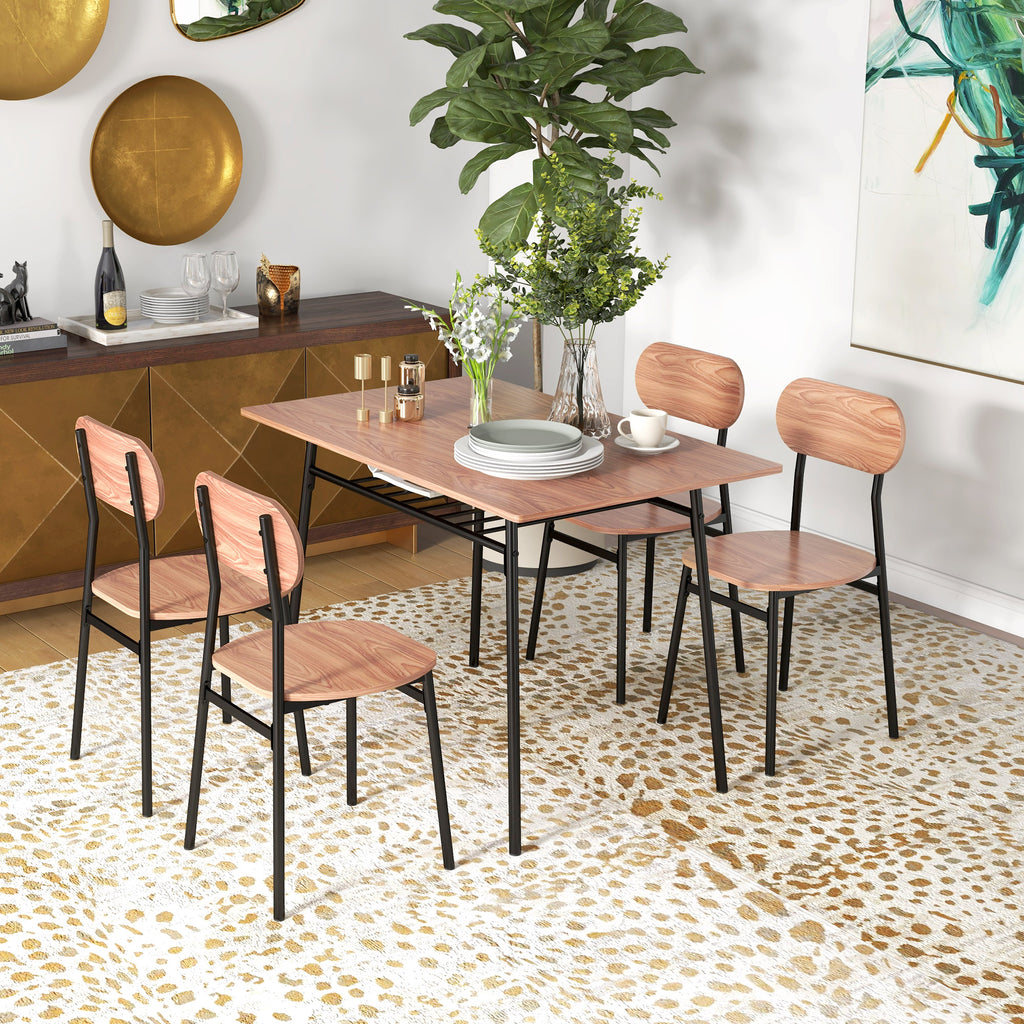 Unser Esstisch Set von HOMCOM verleiht Ihrem Esszimmer einen Hauch von Stil und dient als eleganter Mittelpunkt für Familienessen und Treffen mit Freunden. Der geräumige rechteckige Tisch bietet Platz für Ihr Geschirr, während das Metallregal unter dem Tisch zusätzlichen Stauraum bietet. Der kleine Tisch und die Stühle stehen auf massiven Stahlbeinen und strahlen Stabilität und Qualität aus. Tauchen Sie ein in die perfekte Mischung aus Stil, Qualität und Komfort mit unserem Esszimmermöbel.