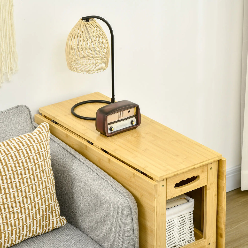 Mit diesem raffinierten Raumwunder von Tisch können Sie auf engstem Raum wie die Könige:innen speisen! Dieser praktische Klapptisch von HOMCOM verfügt über zwei klappbare Tischseiten, sodass er im Handumdrehen in einen großen Esstisch für bis zu sechs Personen oder in einen schmalen, bequemen Beistelltisch verwandelt werden kann. Zwei umrandete Ablageflächen unter der Tischplatte helfen, Gläser & Geschirr bequem aufzubewahren, während zwei verstellbare Füße für einen sicheren Stand sorgen.