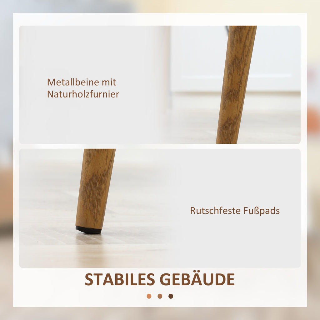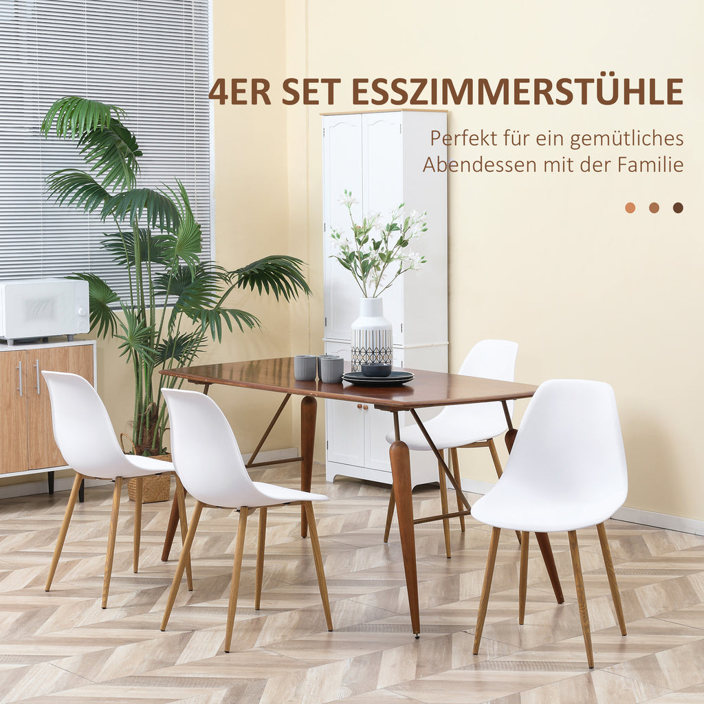 HOMCOM Esszimmerstuhl 4er-Set, Metallbeine in Holzoptik, rutschfeste Füße, bis 120 kg, Weiß/Holzdekor