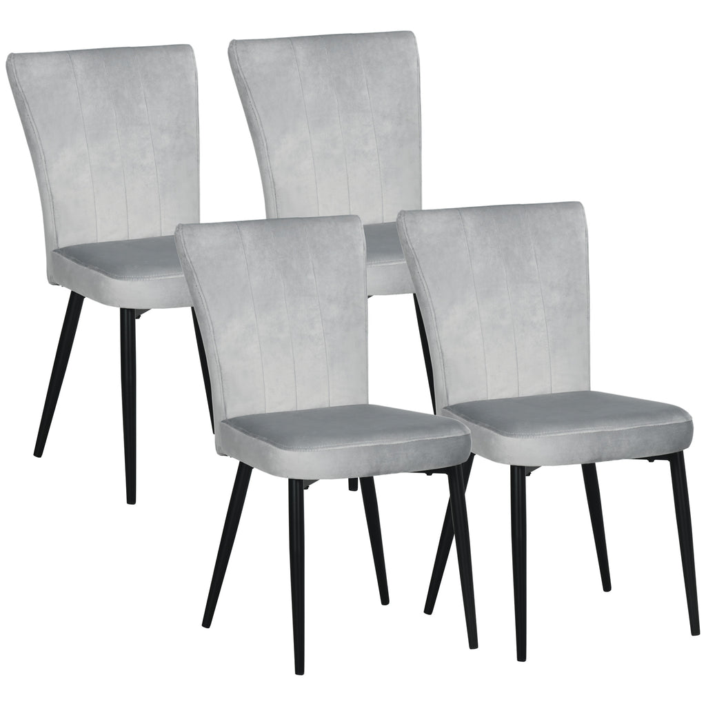 Bringen Sie frischen Wind in Ihre Wohnung mit diesem Stuhlset von HOMCOM. Es besteht aus 4 Esszimmerstühlen in Velours-Optik. Dieses Essstuhlset verleiht ihrem Esszimmer jede Menge Stil. Die weiche Polsterung und das solide Gestell aus Stahl bieten Ihnen viel Komfort, während Sie sitzen. Lehnen Sie sich zurück und entspannen Sie sich auf der gepolsterten Sitzfläche und der geschwungenen Rückenlehne.